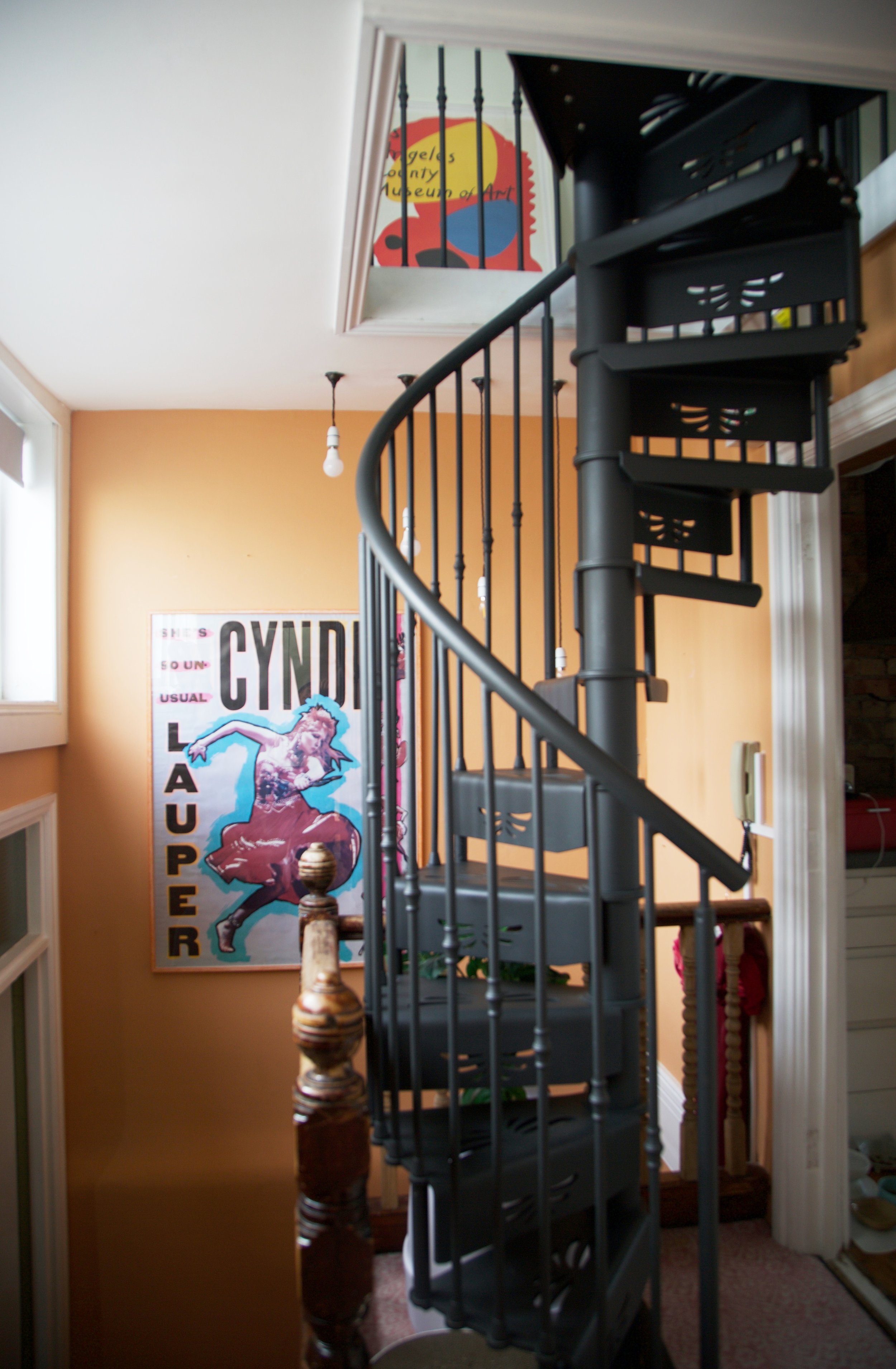 The metal staicase up to Emma’s office was designed to be practical, but also safe and beautuful.